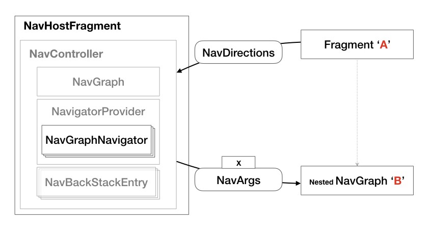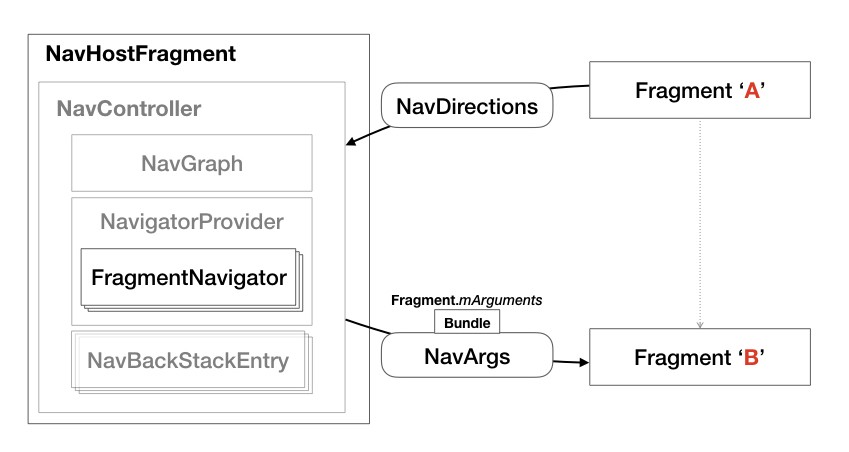 => Navigation Graph์์ ํน์ ๊ฒฝ๋ก๋ฅผ ๋ฐ๋ผ ์ด๋ํ ์ง, ํน์ ๋์์ผ๋ก ์ง์ ์ด๋ํ ์ง NavController์๊ฒ ์ ๋ฌํ๊ณ , NavController๊ฐ NavHost์ ์ ์ ํ ๋์์ ํ์ํด์ฃผ๋ ๋ฐฉ์